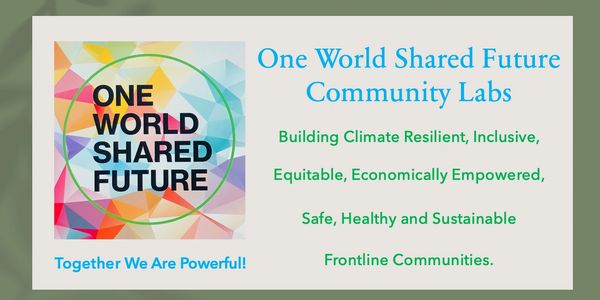 One World Shared Future was founded with a simple idea: to provide frontline families and communities with the environmental knowledge they need to plan, prepare, adapt and protect their health, homes and community environment from the impacts of climate change. The earth's changing climate will affect us all. We know new innovations, jobs and products will be developed to address the increasing intensity of climate change on the weather, air quality, water resources and aquatic life, pollution and waste, land use and soil health, agricultural production and food supply, human and animal health, biodiversity and ecosystems. We believe that although climate change is not a good situation, it is an opportunity for new job training and entrepreneurship. It is also an opportunity for community members to become cohesive and inclusive recognizing that we all have unique talents and abilities that can be useful in disaster situations and emergencies. Working together, the weight of it all becomes lighter and more manageable.